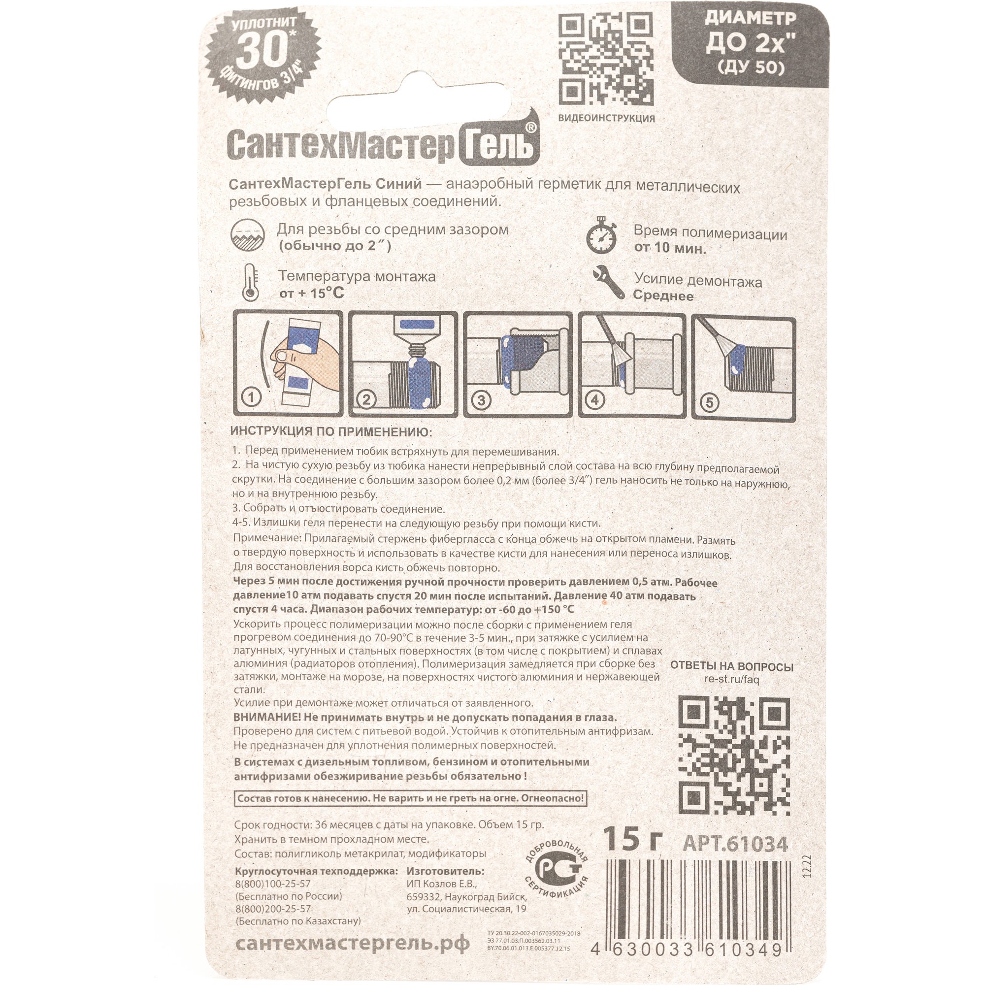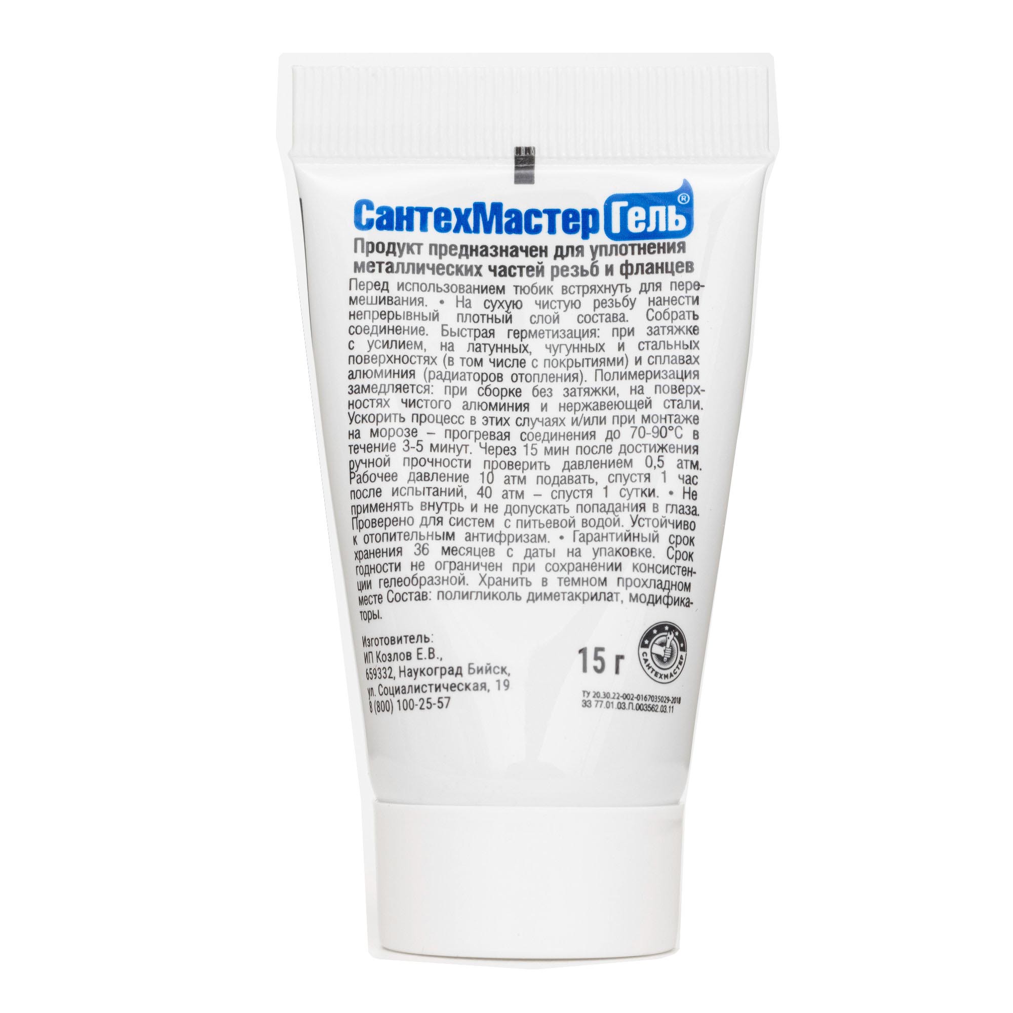 СантехМастер Гель синий — это анаэробный герметик для металлических резьб со стандартным (средним) зазором и металлических фланцев.